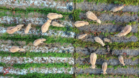 “野象分家、合群都是正?,F(xiàn)象,是為了滿足個(gè)體及群體更好地生存繁衍。”陳飛介紹,亞洲象體型龐大,每天所需食物和飲水多,所以要不停地遷徙以覓食、尋找水源和補(bǔ)充鹽分的“硝塘”。在這個(gè)過程中,一個(gè)家族可能會(huì)與別的家族合群,然后再分開。