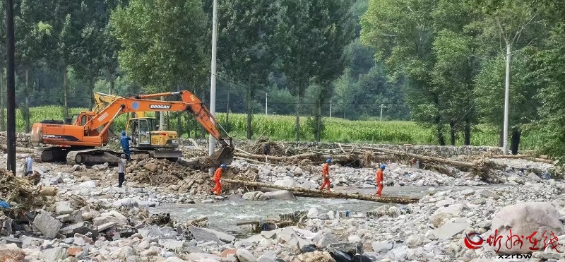 8月2日,隨著道路部分恢復(fù)通行,電力工程車終于開(kāi)進(jìn)通往五臺(tái)駝梁景區(qū)的灣子溝,眼前的一切讓人觸目驚心,近兩年剛通車的柏油路損毀嚴(yán)重,路外側(cè)的護(hù)欄以擰麻花一般的姿態(tài)被擱淺在河道中間,河道里仍然湍急的水流穿行在巨大的卵石之間,摧毀的大樹(shù)、沖垮的橋梁、傾倒的電桿和混在泥濘中的電線隨處可見(jiàn)。