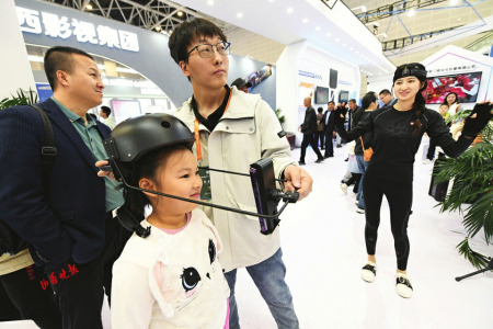 1.在第六屆山西文化產(chǎn)業(yè)博覽交易會現(xiàn)場,觀展者在體驗(yàn)虛擬數(shù)字人。
