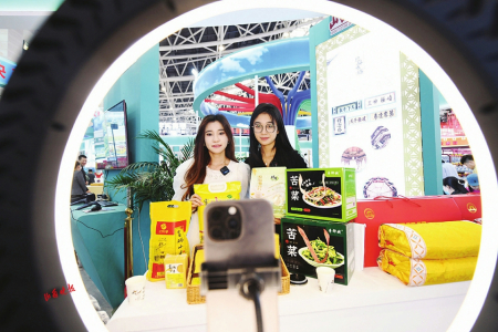 4.第六屆山西文化產(chǎn)業(yè)博覽交易會上,各路主播紛紛亮相,為當(dāng)?shù)靥禺a(chǎn)代言、促銷。