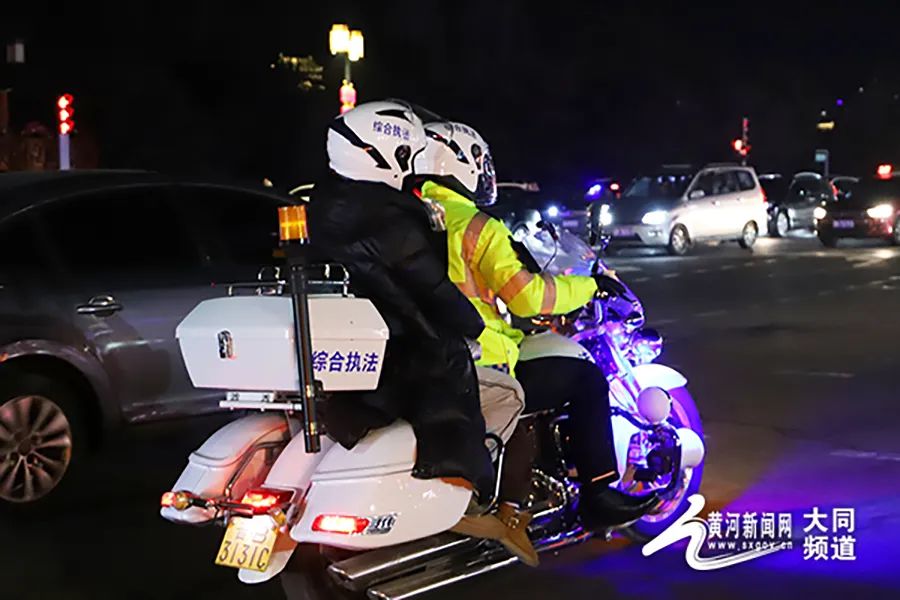 在人流如織的古城街頭,大同平城區(qū)鐵騎隊員們?nèi)找箞允?,全時段管理,快速、便捷排查轄區(qū)內(nèi)各主次干道及重點區(qū)域的死角、盲區(qū),疏導(dǎo)攤點,規(guī)范非機(jī)動車停放,幫助前來求助的旅客與市民,做到了城市管理“不打烊”,“城管藍(lán)”春節(jié)不斷檔。