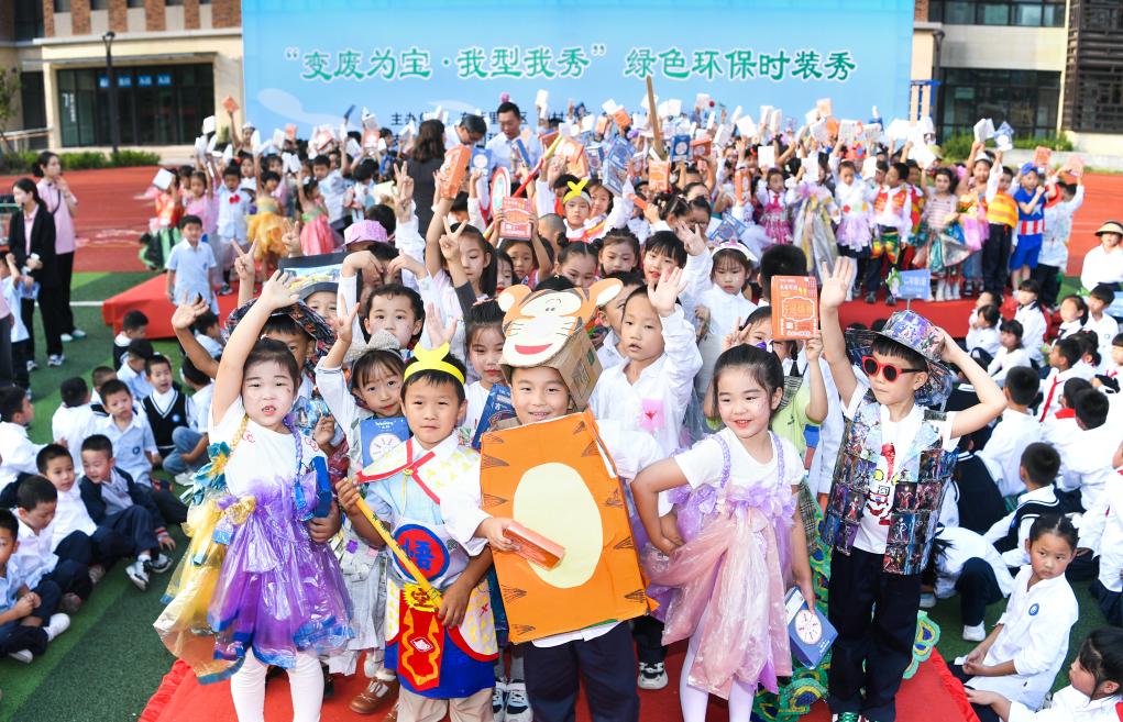 2023年9月,悅?cè)菪W(xué)舉辦環(huán)保時裝秀活動。新華社發(fā)