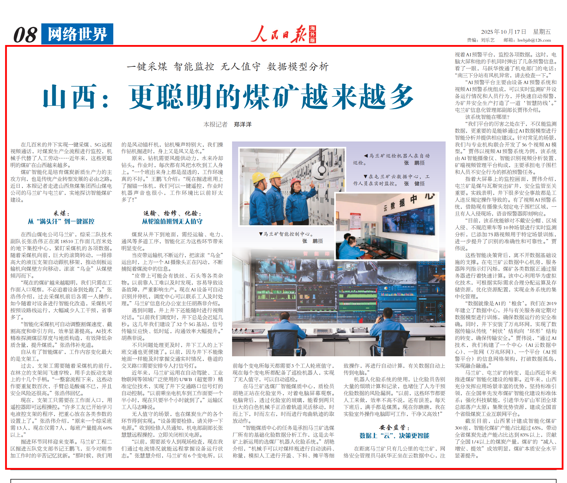 “數(shù)據(jù)就像是AI的‘糧食’。我們在2019年建立了數(shù)據(jù)中心,并與有關服務商定期對數(shù)據(jù)模型進行訓練,確保數(shù)據(jù)運行的安全準確。同時,井下安裝了萬兆環(huán)網(wǎng),實現(xiàn)了數(shù)據(jù)傳輸從傳統(tǒng)‘樹狀’結(jié)構(gòu)向‘環(huán)形’結(jié)構(gòu)的轉(zhuǎn)變,確保傳輸安全。”賈偉說,“通過AI技術,我們構(gòu)建了一個中心(AI云數(shù)據(jù)中心)、一張網(wǎng)(萬兆環(huán)網(wǎng))、一個平臺(AI預警平臺)的信息網(wǎng)絡架構(gòu),打破數(shù)據(jù)孤島,實現(xiàn)融合融通?!?/p>