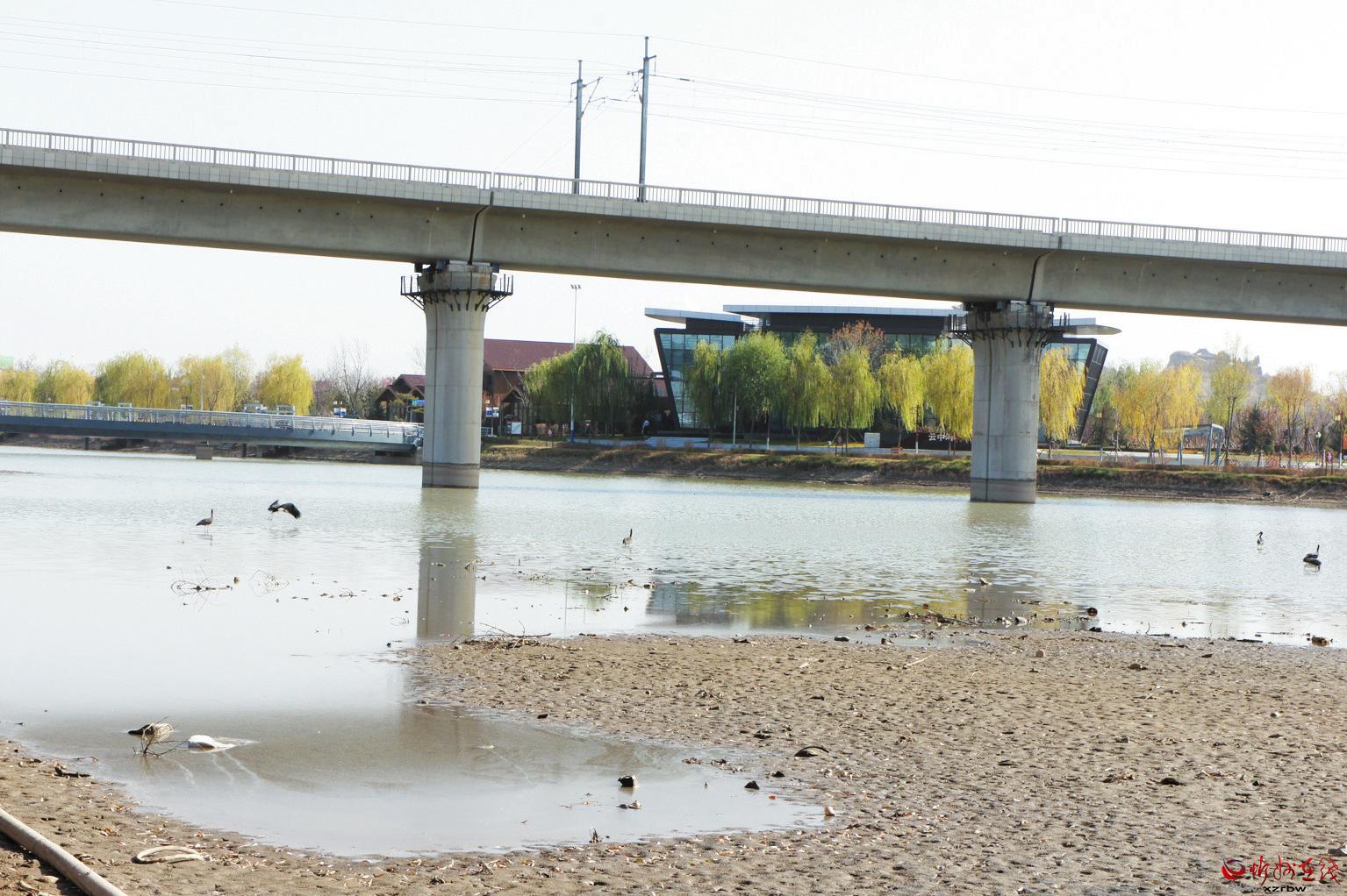 11月7日,數(shù)只黑鸛在云中河景區(qū)高速鐵路橋下涉水覓食。我市在加大城市基礎(chǔ)設(shè)施建設(shè)的同時,公園和綠地的建設(shè)同步提速,極大地改善了人居環(huán)境。優(yōu)美的環(huán)境不僅提高了居民的生活質(zhì)量,也吸引了野生鳥類棲息。 (張劍雄 攝)