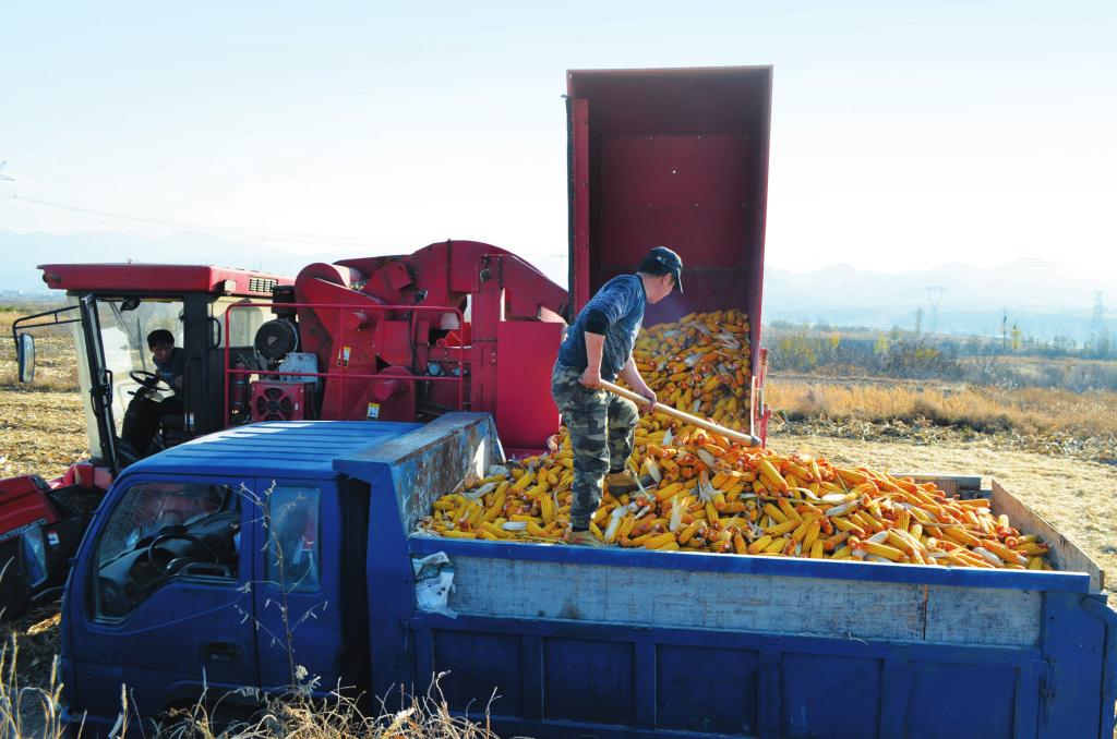 五臺(tái)縣東冶鎮(zhèn)北一村積極推進(jìn)土地確權(quán)流轉(zhuǎn),使外出村民棄耕和管理不善的土地向種田能手集中。村民王春明流轉(zhuǎn)土地800畝,并購置了大型農(nóng)機(jī)具,進(jìn)行科學(xué)種植,實(shí)現(xiàn)了增收致富。圖為王春明利用收割機(jī)搶收玉米,保證顆粒歸倉。 (王金龍 攝)