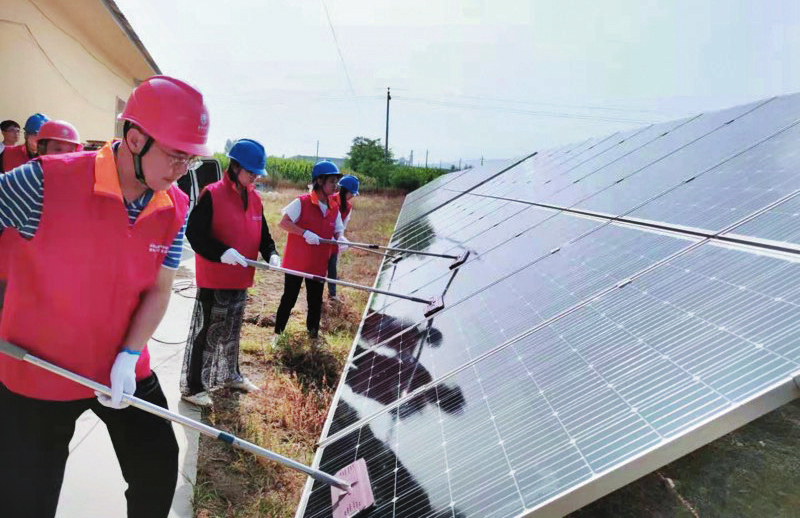 隱患排查完畢后,黨員服務隊配合光伏運維管理單位的工作人員,細致地對每一塊光伏板表面的污垢進行了清理,以提高光伏板的發(fā)電效率,為推進“雙碳”目標貢獻力量。(記者 王 晟)