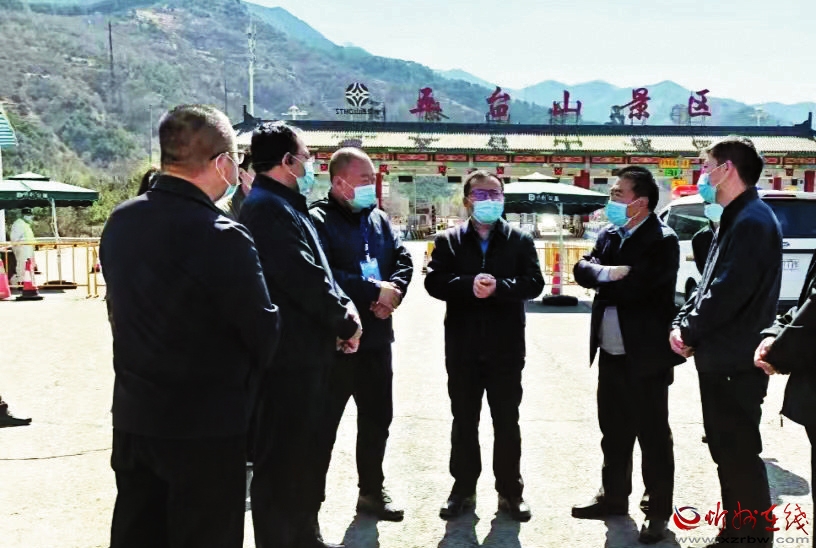 圖為景區(qū)有關(guān)人員在疫情防控一線安排黨建及疫情防控工作。