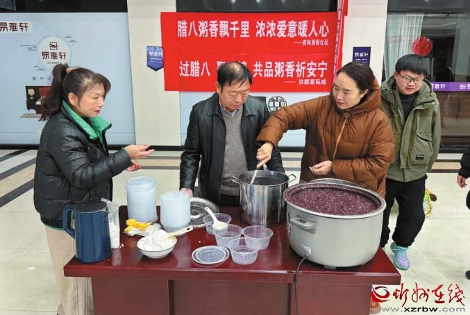 活動(dòng)當(dāng)天,社區(qū)工作人員對(duì)現(xiàn)場(chǎng)認(rèn)真消毒后,就開(kāi)始熬粥:淘洗糯米,去除蓮心,把蜜棗切成小塊,再放入紅豆、桂圓、冰糖等多種食材,慢慢熬煮后,軟糯香甜的紅豆粥完成了。“喝上一碗熱乎乎的甜粥,心里也熱乎乎的?!杯h(huán)衛(wèi)工人李大媽開(kāi)心地說(shuō)。