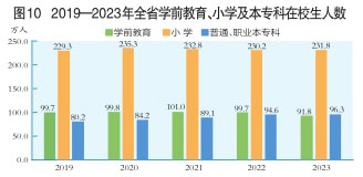 全年全省研究生教育招生2.1萬(wàn)人,在學(xué)研究生6.1萬(wàn)人,畢業(yè)生1.6萬(wàn)人。普通本科招生14.7萬(wàn)人,在校生55.1萬(wàn)人,畢業(yè)生13.8萬(wàn)人。職業(yè)本??普猩?3.8萬(wàn)人,在校生41.2萬(wàn)人,畢業(yè)生12.5萬(wàn)人。中等職業(yè)教育招生13.8萬(wàn)人,在校生41.6萬(wàn)人,畢業(yè)生13.5萬(wàn)人。普通高中招生21.2萬(wàn)人,在校生67.8萬(wàn)人,畢業(yè)生22.1萬(wàn)人。初中招生37.1萬(wàn)人,在校生112.2萬(wàn)人,畢業(yè)生34.9萬(wàn)人。小學(xué)招生39.9萬(wàn)人,在校生231.8萬(wàn)人,畢業(yè)生37.9萬(wàn)人。特殊教育招生0.4萬(wàn)人,在校生2.0萬(wàn)人,畢業(yè)生0.4萬(wàn)人。學(xué)前教育在園幼兒91.8萬(wàn)人。(圖10)