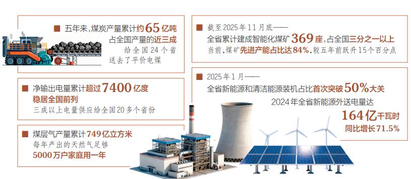 穩(wěn)產保供有力有效?!笆奈濉逼陂g,全省新增產能1.5億噸/年,日均產量穩(wěn)定在350萬噸以上,累計生產原煤約65億噸,占全國總產量的近三成;以長協(xié)價為24個省份保供電煤20億噸以上,有力保障了國家經濟社會發(fā)展用能需要。