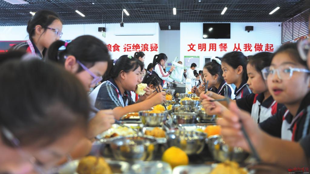 走進(jìn)長(zhǎng)城小學(xué),1535.25平方米的校內(nèi)餐廳里,900余名師生在老師引導(dǎo)下有序取餐、就餐,餐盤(pán)里葷素搭配的飯菜色香味俱全,孩子們的臉上滿是笑意。“以前爸媽工作忙,我每天得坐校車來(lái)回跑,現(xiàn)在有了午托太幸福了!午餐每天不重樣,有肉有湯,比媽媽做得還香!”六年級(jí)學(xué)生李宸慶捧著飯菜笑著說(shuō)。