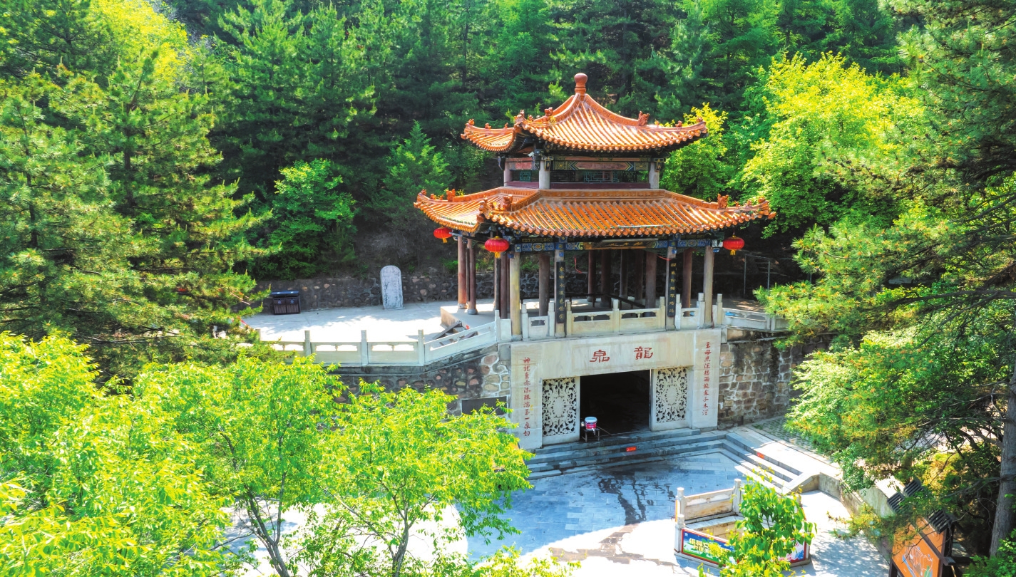 山有水而媚,土得水而沃。從大雄寶殿出來(lái),沿著西門(mén)旁一條小道不遠(yuǎn)處,就是那片號(hào)稱(chēng)“天柱松濤”的松林了。只見(jiàn)樹(shù)干筆直,枝條蒼勁,直指云霄,林間松脂飄香,氣息悠然。人還在松林中流連尋芳,遠(yuǎn)遠(yuǎn)就能聽(tīng)到聞名已久的“天柱龍泉”在流淌。龍泉位于景區(qū)廟群西南的龍泉閣,作為“靜樂(lè)舊八景”之首的“天柱龍泉”,又名“犬舐泉”,《魏書(shū)》載:“爾朱榮高祖羽健居北秀容川。會(huì)有狗舐地,因而穿之,得甘泉,故名。”相傳泉中出神龍,故名龍泉。高山出泉是為奇觀(guān),泉水清澈見(jiàn)底,旱不涸、澇不盈,夏飲清神,冬飲沁心。有“天柱圣境啟心智,龍泉奇觀(guān)令神怡”之頌。此泉水富含多種礦物質(zhì)和微量元素,是地地道道的“天然級(jí)礦泉水”。近幾年上山鍛煉的居民很多,人們上山時(shí)自帶裝水工具,攜泉水以做飯和飲用,期盼著龍泉水能給人帶來(lái)健康和好運(yùn)。站在龍泉邊,總能感受到一陣陣濕潤(rùn)的水氣撲面而來(lái),甚至像風(fēng)一樣輕繞著周身,使人置身于自然美景中不愿離開(kāi),連呼吸也變得無(wú)比暢快起來(lái)。