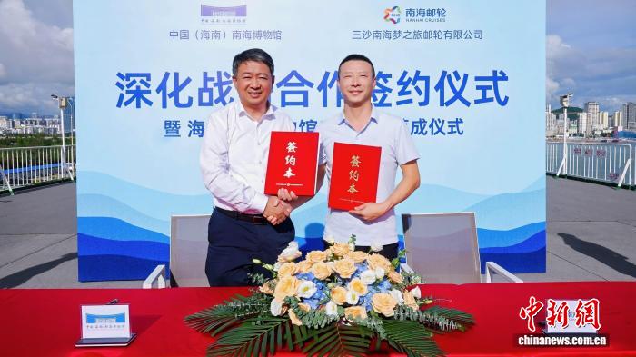 10月13日,全國首家海上流動博物館升級改造落成儀式在三亞舉行。圖為中國(海南)南海博物館與三沙南海夢之旅郵輪有限公司簽約。(三沙南海夢之旅郵輪有限公司 供圖) 當天,中國(海南)南海博物館與三沙南海夢之旅郵輪有限公司簽訂了深化戰(zhàn)略合作協(xié)議,雙方將在展覽展示、文創(chuàng)研發(fā)、講解及研學活動等方面展開深入合作,實現(xiàn)品牌增值、文化傳播和游客旅行體驗提升等多重目標。(完) (責任編輯:盧相?。?/span> |