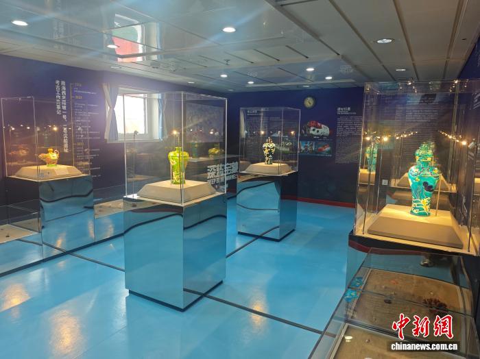 10月13日,全國首家海上流動博物館升級改造落成儀式在三亞舉行。圖為“南海之夢”號郵輪上全新推出的“深藍寶藏——南海西北陸坡一二號沉船考古成果特展”主題展覽。張月和 攝 南海西北陸坡一號、二號沉船遺址是中國“2023年度全國十大考古新發(fā)現(xiàn)”。2024年9月,“深藍寶藏——南海西北陸坡一二號沉船考古成果特展”在中國(海南)南海博物館面向公眾開放,408件(套)來自海底1500多米、“沉睡”了500多年的沉船遺址出水文物首次亮相。此次升級改造后的海上流動博物館中,就展出了多件沉船遺址出水琺華彩瓷器的復仿制品,供民眾觀賞。 此外,海上流動博物館在優(yōu)化原有的“美麗富饒的南海”圖文展覽的基礎(chǔ)上,新增標本展示區(qū)與文創(chuàng)空間等多個功能板塊,通過進一步提質(zhì)擴容,將“南海之夢”號郵輪打造為一座“移動的海洋文化客廳”,滿足游客多元化、互動化的觀展需求。