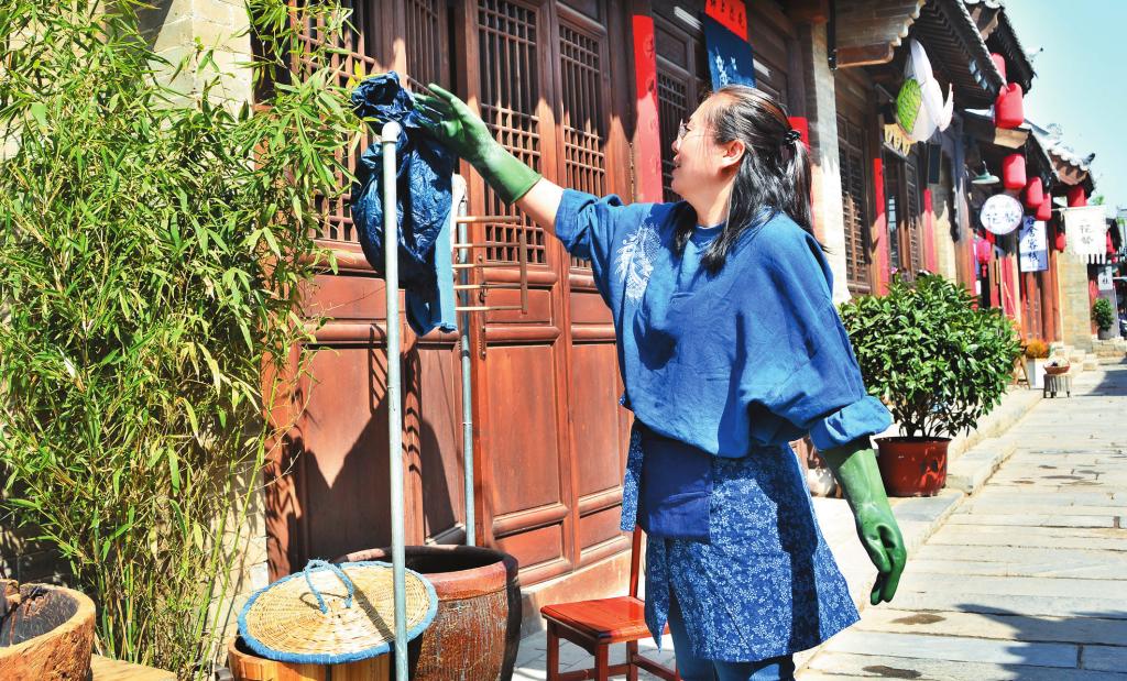趙慧說,古城文創(chuàng)街的店鋪給了手工藝人更多的可能性和幸福感。以前大多是因?yàn)闊釔?,自己四處找了染材做著玩,身邊的朋友們口口相傳,遇見喜歡的就收走,現(xiàn)在有了古城的平臺,更多的人認(rèn)識了草木染,更多喜歡傳統(tǒng)文化、講究生活品質(zhì)的朋友們愛上了這樣的作品。趙慧守著小店,染染布、縫縫包、種種花、喝喝茶,把自己的熱愛和鉆研一顏一色染進(jìn)布里,一針一線縫到作品中。通過那些有趣和有創(chuàng)意的作品,她覺得生活更加溫馨了。