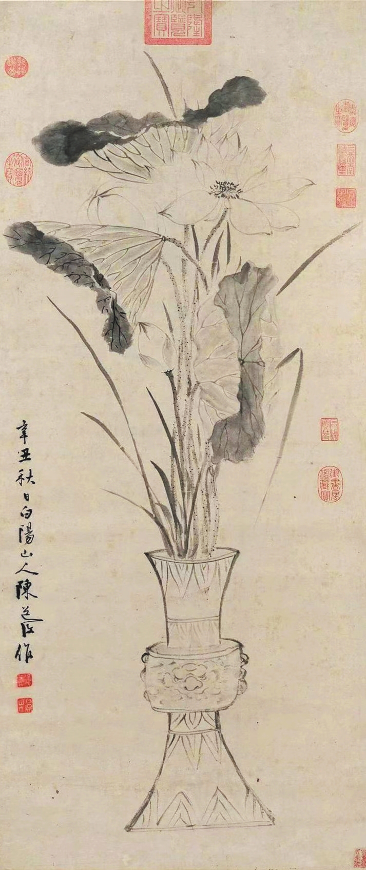 中國插花藝術(shù)歷史悠久,其中文人插花以其獨特的藝術(shù)面貌與審美趣味,成為傳統(tǒng)插花的典型代表。文人插花始于五代,興于宋元,于明代發(fā)展至高峰。萬歷年間,文人雅士熱衷于插花活動,出現(xiàn)了《瓶史》《瓶花譜》等理論典籍,與明代畫家陳淳、沈周、唐寅、仇英、陳洪綬等人的相關(guān)創(chuàng)作相互呼應(yīng),確立了文人插花的審美范式。