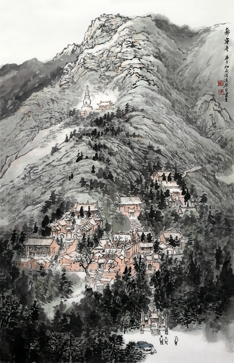 后來因?yàn)樗L畫上取得的成績,調(diào)到了忻府區(qū)文聯(lián)工作。條件好了,畫的畫更多了,畫風(fēng)依然樸實(shí)親切,給人一種視覺的舒適感。這幾年他是在一路前進(jìn)的,他筆下的線條清朗有力,墨色變化也更加豐富,畫中有了渾厚華滋的氣象。細(xì)看他的畫,樸實(shí)中蘊(yùn)藏著精巧,拙拙的行筆中偶露鋒厲,給畫面帶來活力生機(jī)。我們在一起寫生,他在畫面經(jīng)營上、構(gòu)圖處理上總能給人意想不到的驚喜。畫面虛實(shí)處理把握的恰到好處,又能準(zhǔn)確表現(xiàn)自然原貌的神采。于不知不覺中將自己的審美和情感融入了畫中,完成的寫生總比自然景色更加生動、更吸引人的目光,但又讓你看不出他是在哪里做了手腳。