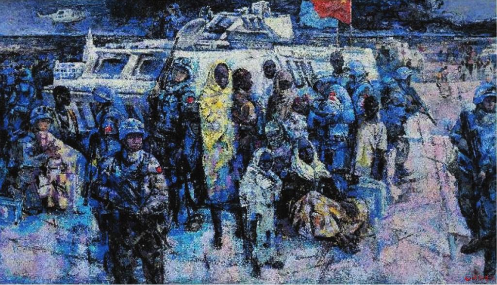 在續(xù)鶴賢眾多的作品中,從畫面表現(xiàn)效果方面,我是比較喜歡《和平使命——藍(lán)色交響曲》這幅作品的。無論畫面構(gòu)圖、色彩關(guān)系,還是人物造型以及表現(xiàn)技巧,都堪稱完美。畫面中無論人物形象、動(dòng)態(tài)、表情,還是人與自然背景,都處在一種和諧美好的關(guān)系中,從一個(gè)新的角度給予美好詮釋。這幅作品表現(xiàn)的是我們的維和部隊(duì)“子弟兵”以自己的生命守護(hù)著世界和平,講述著構(gòu)建人類命運(yùn)共同體的大國情懷。 (邢晨聲 文) (責(zé)任編輯:盧相?。?/span> |