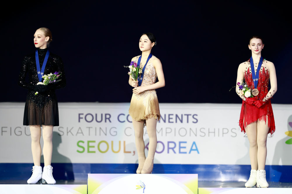 女單比賽中,亞冬會冠軍、韓國選手金彩然主場奪冠,亞軍、季軍則由美國選手獲得。此前在亞冬會遭受感冒困擾的安香怡找回狀態(tài),總成績刷新個人賽季最佳,排名第13位。另外兩名中國隊選手朱易、陳虹伊分列第15位和第17位。