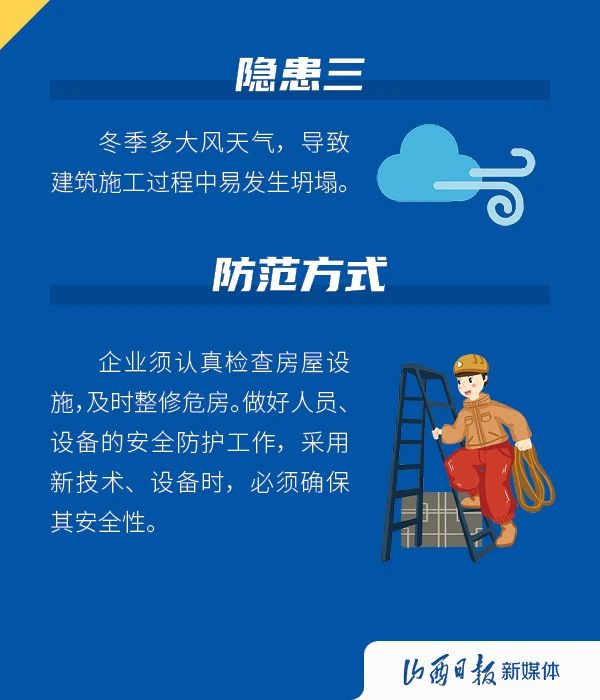 進入冬季,氣溫下降,晝夜溫差大,冷暖變化不規(guī)律,一些事故發(fā)生概率會因為季節(jié)性因素而升高,影響企業(yè)的安全生產(chǎn),下面這些隱患需注意。