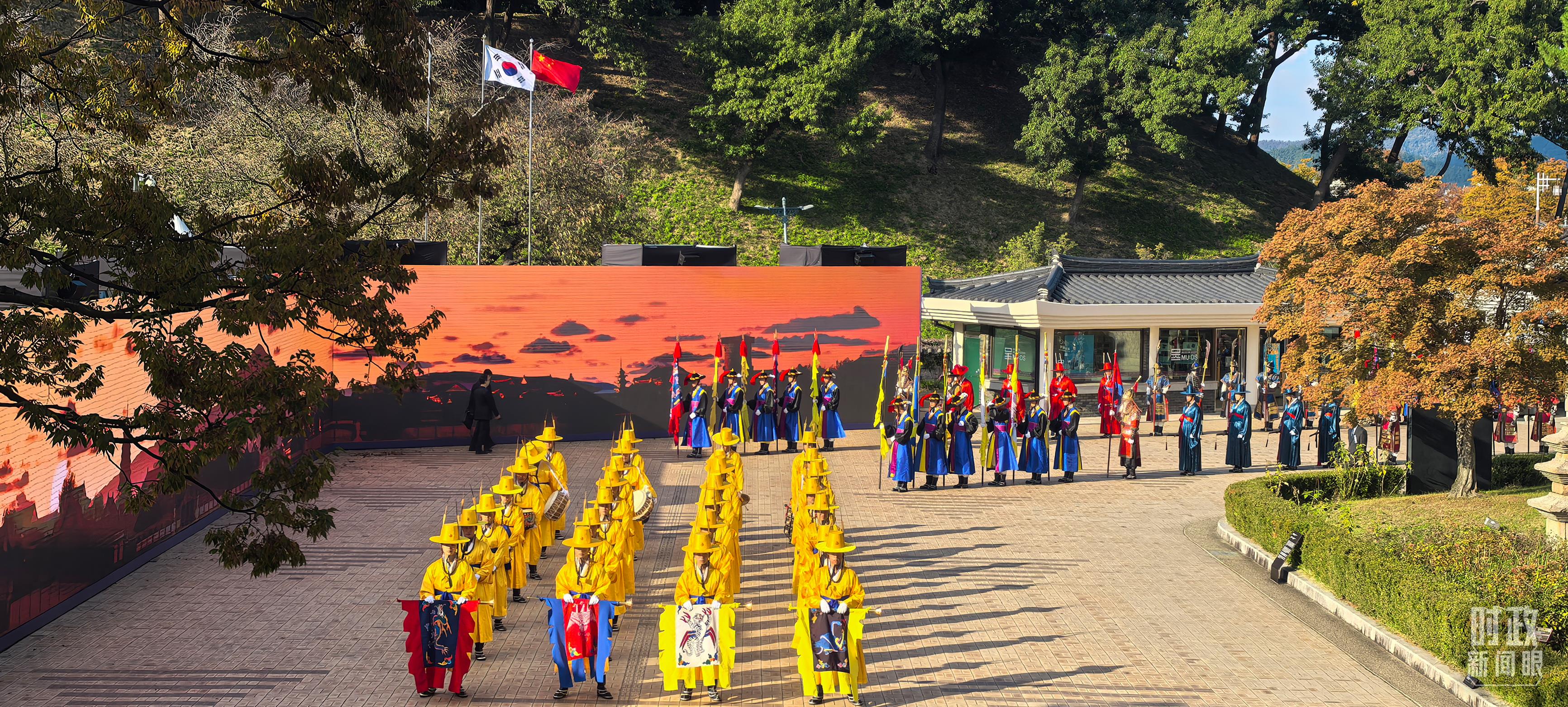 在慶州博物館的千年微笑館,李在明總統為習主席舉行高規(guī)格歡迎儀式,身著傳統民族服飾的韓國禮儀隊,隆重歡迎習主席到來。