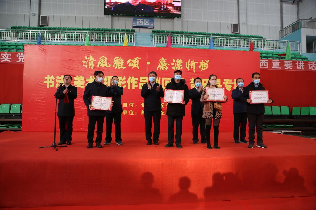 2020年12月2日,“清風(fēng)雅頌·廉潔忻州”書法美術(shù)攝影作品展靜樂站巡展開展儀式在靜樂縣體育中心舉行,縣四大班子領(lǐng)導(dǎo)出席開展儀式,縣委常委、縣紀(jì)委書記、監(jiān)委主任方筆計主持。