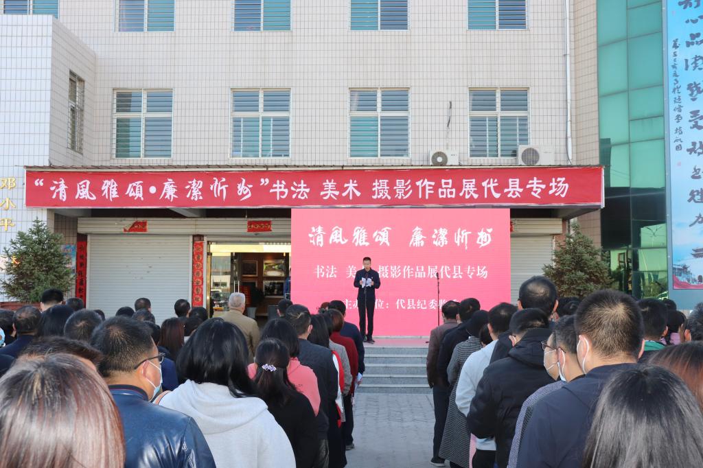 本次“清風雅頌·廉潔忻州”書法美術攝影作品展,在代縣專場展出為期三天,入展作品共260幅,其中包括忻州市部分國家級名家特邀作品47幅,省內外助展作品23幅,我縣作品15幅。展出作品分為攝影圖片、書法藝術、繪畫和剪紙四個部分,作品主題鮮明,風格多樣,作者以書畫為載體,深入挖掘書畫藝術的廉潔內涵,以畫承廉、畫賦廉意,結合傳統(tǒng)文化和現代手法,把理想信念、從政道德等反腐倡廉教育內容,形象、生動、直觀地傳遞給廣大黨員干部群眾,使大家在欣賞中得到啟示,在愉悅中受到教育,讓代縣全體黨員干部在潛移默化中受到廉潔教育影響,同時營造“以廉為榮、全民崇廉”的黨風廉政建設新格局。