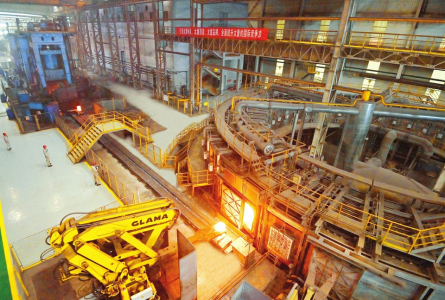 在環(huán)形爐控制室,俯瞰窗外火熱的生產(chǎn)現(xiàn)場(chǎng),只見鋸切、加熱、預(yù)成型、成型、軋制、壓彎各工序井然有序,智能高效的生產(chǎn)場(chǎng)景令參觀者嘖嘖稱贊。