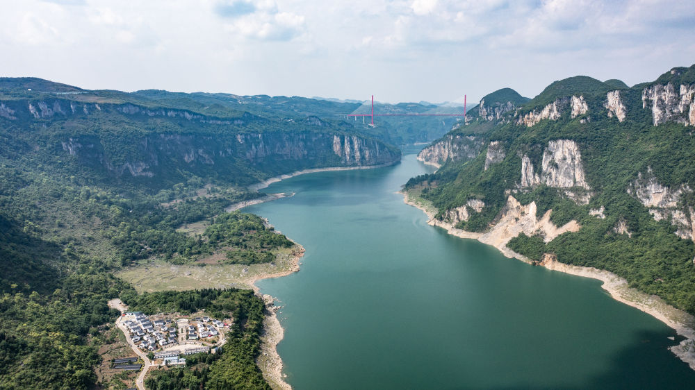 貴州省畢節(jié)市烏江源百里畫廊景色(2022年5月6日攝,無人機(jī)照片)。新華社記者 陶亮 攝