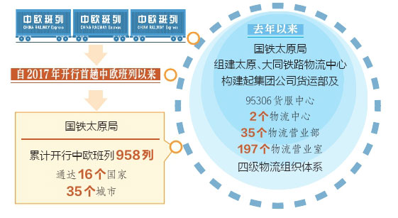 “自2017年開行首趟中歐班列以來,國鐵太原局累計開行的中歐班列已有958列,通達(dá)16個國家、35個城市?!眹F太原局貨運(yùn)部科長田源介紹,“中歐班列已經(jīng)成為不沿海、不沿邊的山西省對外開放重要平臺。”
