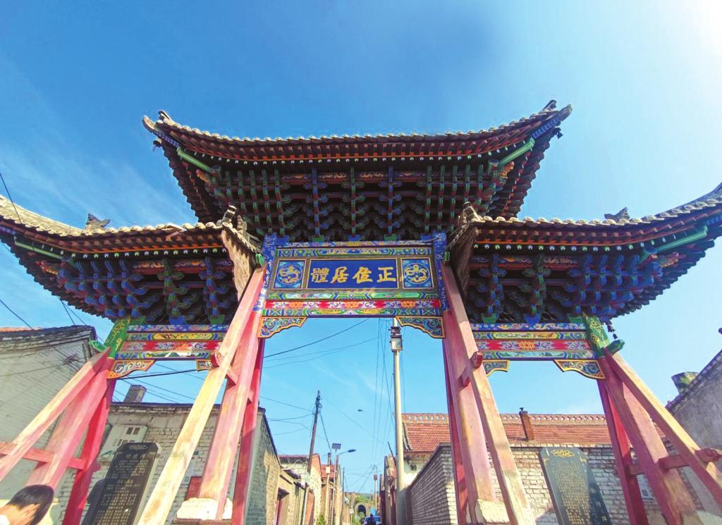 五寨縣三岔木牌坊坐落于三岔堡十字大街的北口,始建于明萬歷九年(1581年)。木牌坊坐北朝南,座基為60厘米高的石砌臺基。牌坊呈三項疊襯“品”字形制,四楹三門,坊高7.25米,通寬11.2米,其中門高3米,寬3.15米,車馬通行;兩邊門略低,高2.65米,寬2米,只呈門樣,不作通行。四楹都用雙木斜卡,并抱有雕獅的石鼓,以鐵條箍制,既固根基,又顯威嚴。欄坊下裝有木刻匾額,正面題“正位居體”,背面題“大觀在上”。頂端起脊彩飛,雙層檐頭,青瓦蓋頂;下檐五步彩飛檐頭拱,結構奇巧,造型美觀,檐頭四角掛有風鈴,微風輕拂,鈴聲悠揚,蔚為壯觀。三岔木牌坊是五寨縣境內僅存的一座木結構明代古建筑,具有較高的建筑文化水平和藝術鑒賞價值。2007年6月6日,忻州市人民政府公布其為市級文物保護單位。