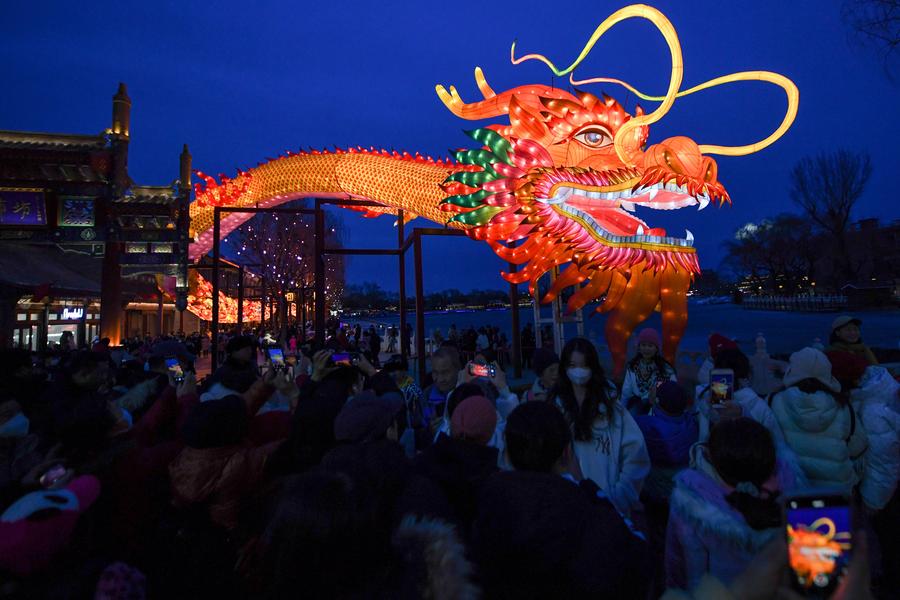 中國各地以龍為主題的展覽、游園會以及文創(chuàng)產(chǎn)品等紛紛“上新”,為中國文旅市場復蘇增添強勁動力。以北京為例,2月10日至2月13日,全市重點監(jiān)測的旅游景區(qū)(地區(qū))為174家,累計接待游客960.1萬人次,同比增長80.4%。