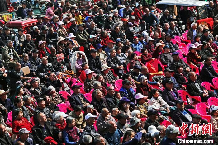 3月14日,在千年古城山西運(yùn)城新絳的百年古槐廟會(huì)上,山西省蒲劇藝術(shù)院演出一團(tuán)上演《打神告廟》《楊廣逼宮》《李逵探母》等經(jīng)典折子戲,吸引十里八鄉(xiāng)的民眾前來觀看。這是山西2024年1萬場(chǎng)“免費(fèi)送戲下鄉(xiāng)進(jìn)村”惠民工程“唱響”三晉大地的一個(gè)縮影。